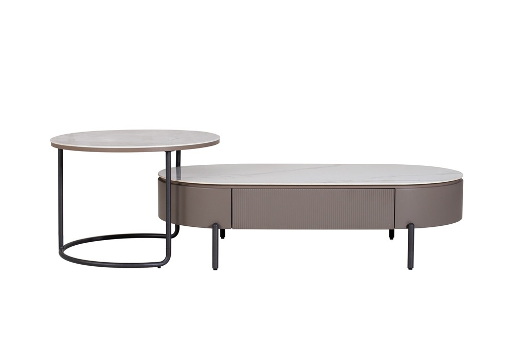 卡塔金巖板面板+石色啞光主體+金屬深灰色金工件